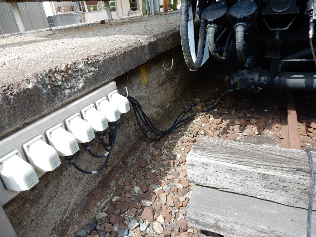 ホームに設置されたコンセントから、車内の電源が取れれてるようです。