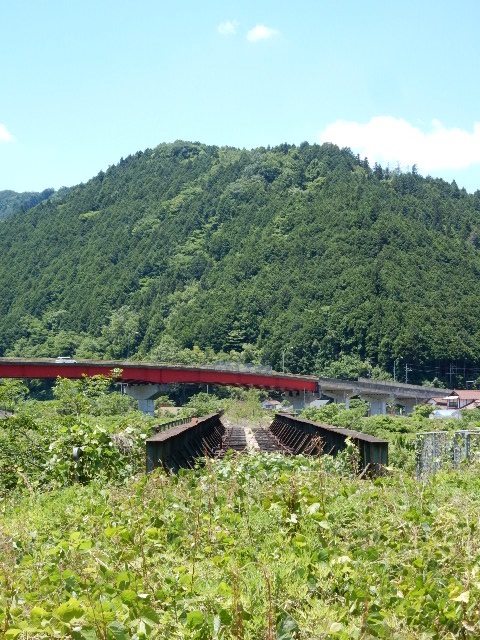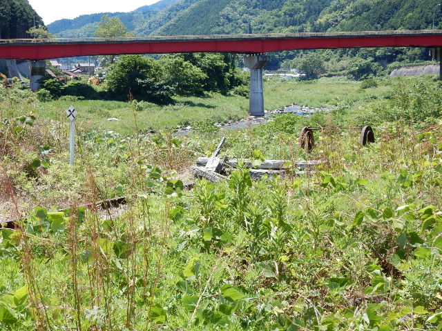 更に先には、鉄橋の遺構だけが残っておりました。…昔はアノ山を