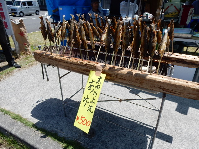 では見る所も一段落したので昼食。ご当地で捕れるらしい、鮎の塩焼き