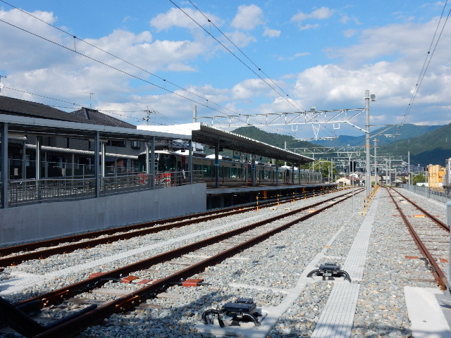 広い留置線が設けてありますが、バラストがまだ新しくキレイですね。