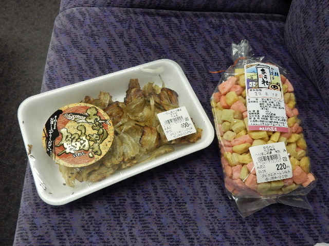乾き物は、イワシの炙り焼きとポン菓子あられ?何れもご当地モノです。