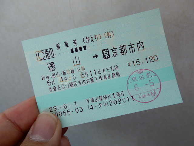 乗車券は京都市内までです。途中に立ち寄る柳井(駅は柳井港)は