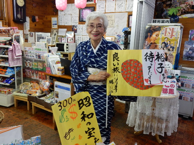 売店の名物女将、まつ子さんです。社長は以前に来た時以来の親交