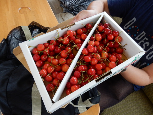 と、山形出身のヨシツグさんから、サクランボの差し入れ。…山形の回