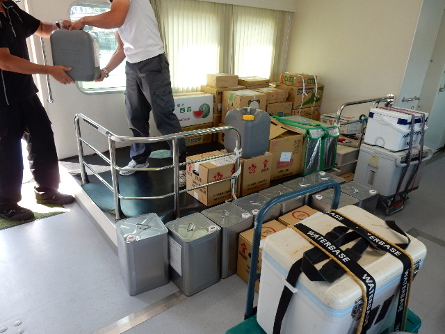 荷物に郵便物の袋があるあたり、いかにも「離島への連絡船」という