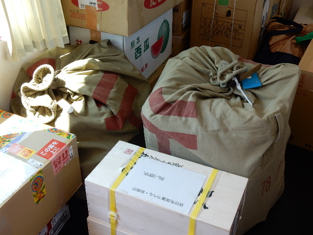 室津の港では、祝島へ運ぶ大量の荷物が積み込まれました。