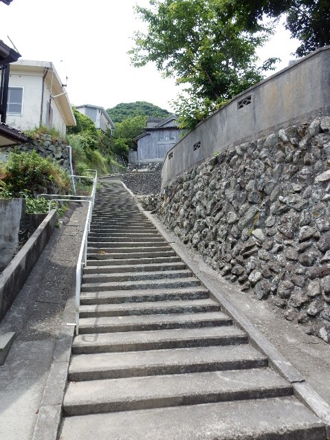 こういう島にありがちな急な石段を登って、高台の方へ行ってみました。