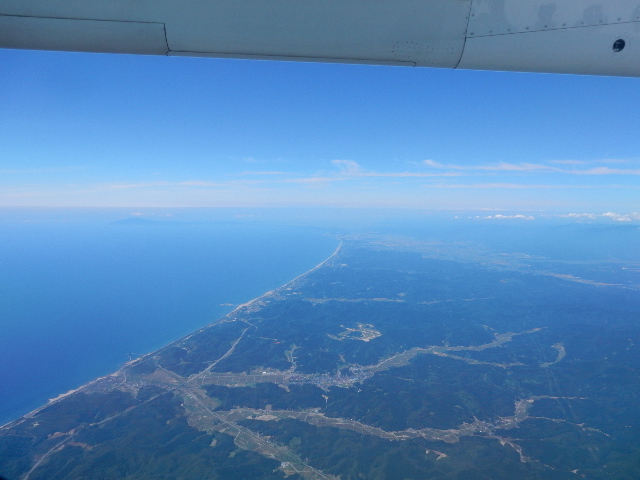 大阪~秋田の飛行機は今だにプロペラなので、飛ぶ高度が低いんだ