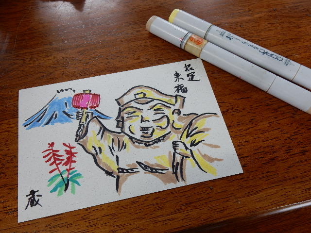 にあった大黒様のレリーフをモデルに描いてみましょう。