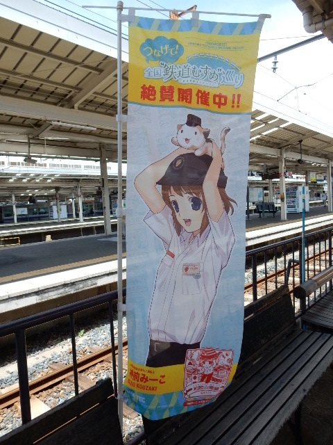 「鉄道むすめ」の萌えキャラちゃんも三毛猫を担いでました。