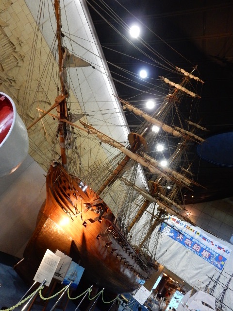 入った所から船舶関係の展示があり、大きな帆船模型などが置かれて