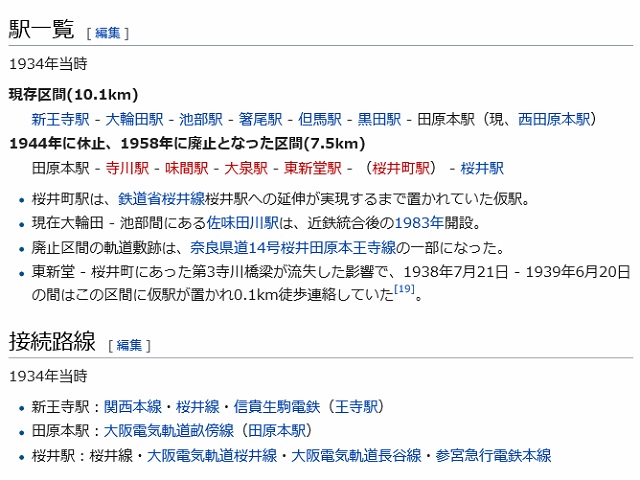 近鉄大阪線(現在)の桜井までを結んでいた路線で、王寺~西田原本