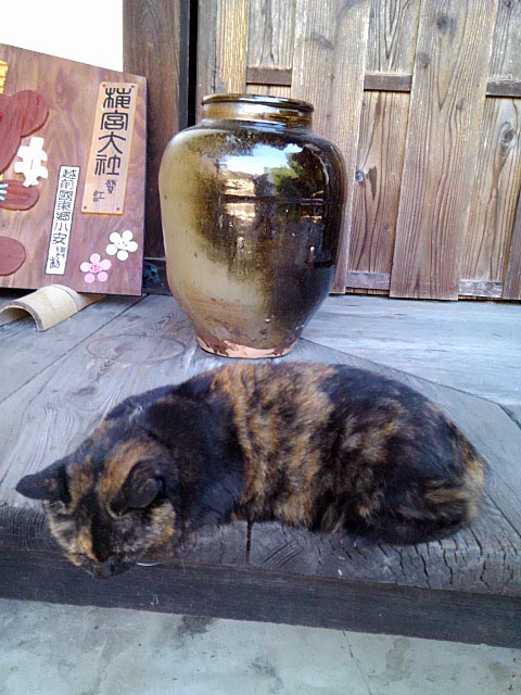 ヨシヨシ→ごろーん。背後にある壺と色が同じだった事に笑えました。