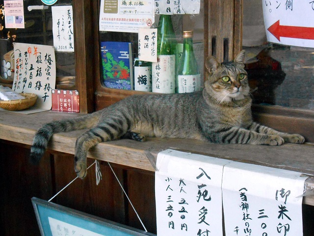 さて梅宮大社です。猫ヨシヨシは一旦中断して神苑を見せて頂いており