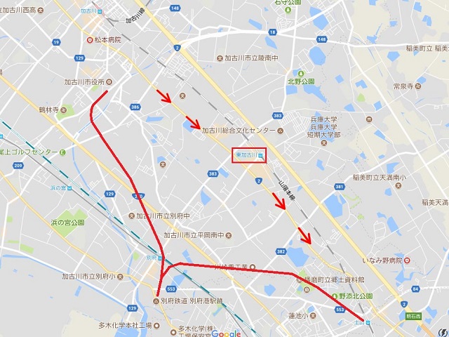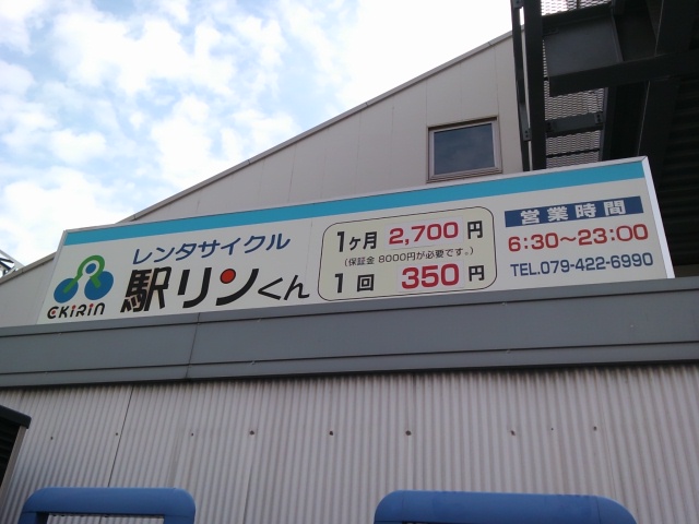 知れない。という事で中間地点に近い東加古川駅でレンタサイクル