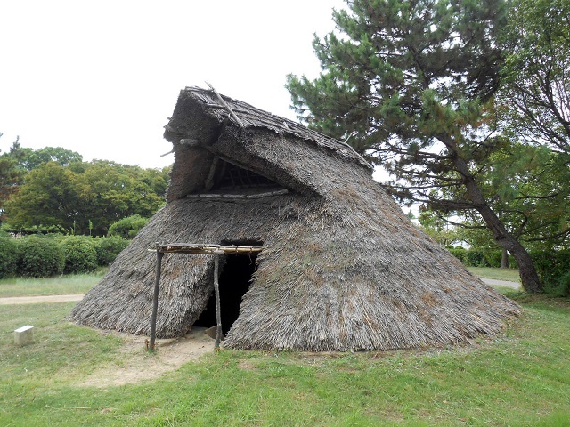 公園内には、復元された竪穴式住居が幾つも展示されており、中にも