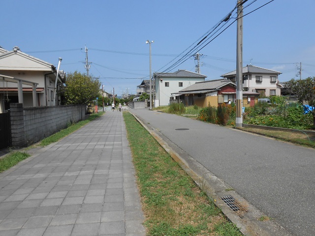 遊歩道(左)と一般の道路(右)が並行している所もあります。