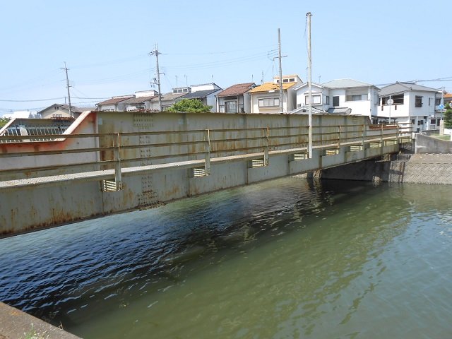 その先の水路(呼称不明)にかかる橋は、鉄道のガーター橋をそのまま