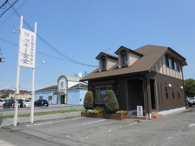 「ラッキー食堂」というお店が近そうなので、ソレにします。