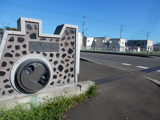 駅を出てすぐに渡る河川橋にも動輪をデザインしたモニュメントがあり
