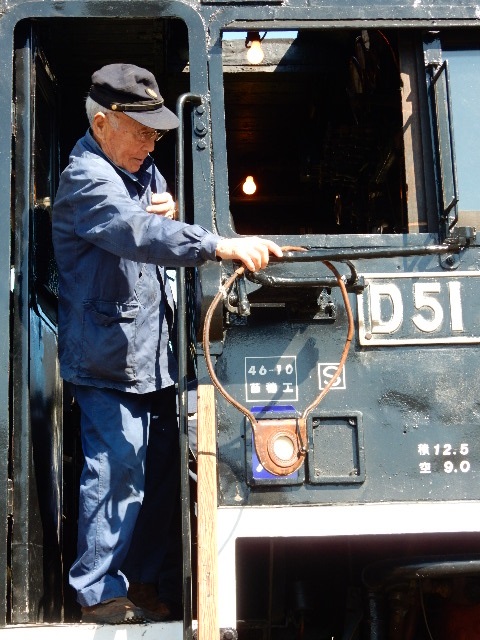 恐らく最年長の方で80代ぐらいか。当時の機関区の職員さんでしょう。