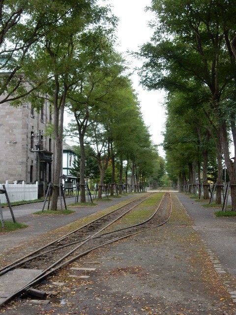 町場の建物が並ぶ市街地エリアにはアカシヤの並木があり、道路の