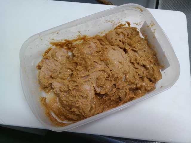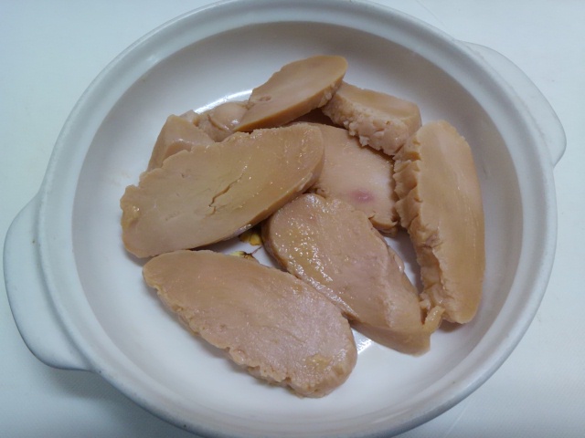 …何となくの思い付きで、コンビニで売ってがちなサラダチキンを漬けて