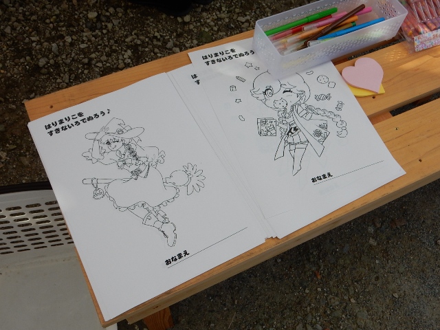 そして、はりまりこさんは自身のキャラクターの塗り絵を持参。