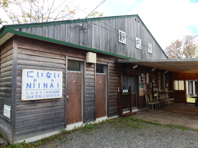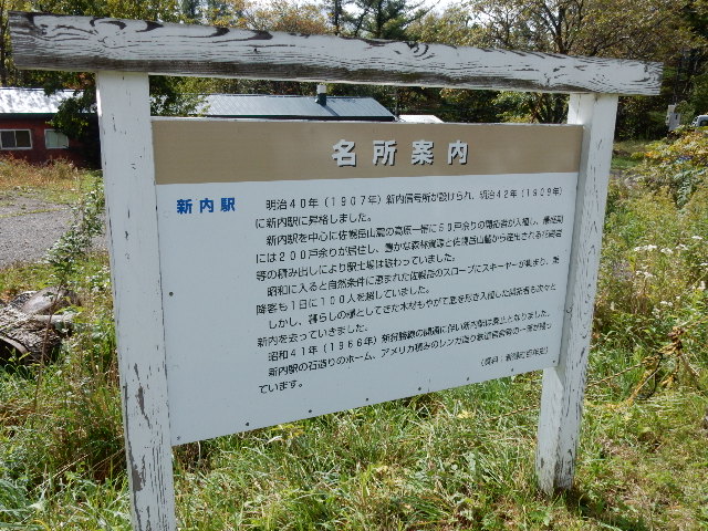 を目印に左へ折れ、旧線新内駅跡地へと向かいます。