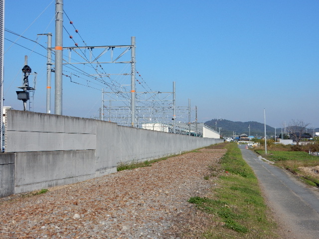 まず目に付いたのが、このような橋台の跡でした。田んぼの中を築堤
