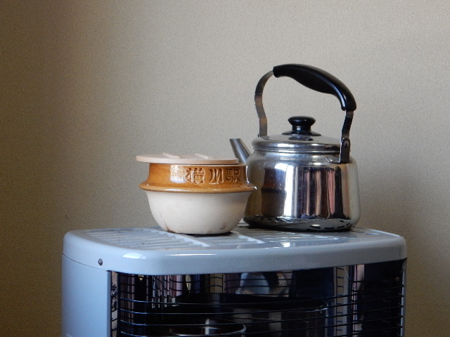 が何やら、ストーブの上に載せてます。