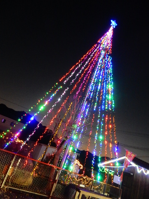 シャッター速度が遅いので、全部の球が点灯してるように見えますが