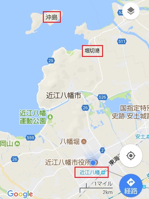 出る堀切港は、近江八幡駅から直線距離で10km少しの所にあります。