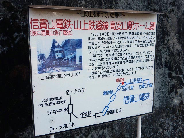 まずそのホームの跡が、ケーブルカーの高安山駅近くに残っています。