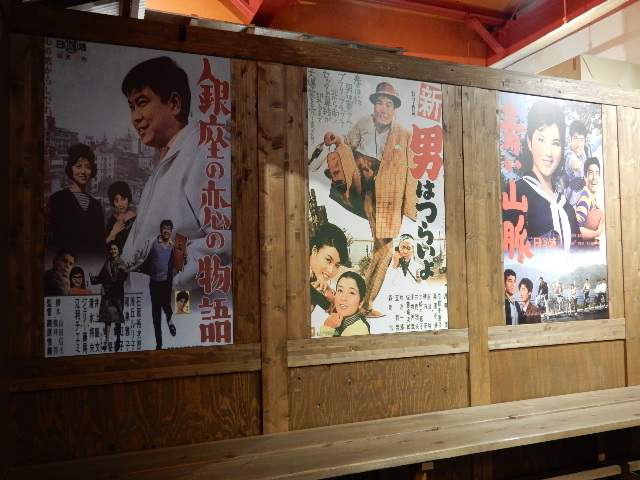 待合室内の雰囲気付けとして、時刻表と映画のポスターがありました。