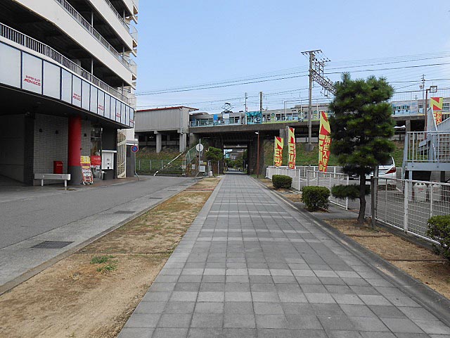 高架になってるホームから見える遊歩道が、まず別府鉄道の廃線跡なの