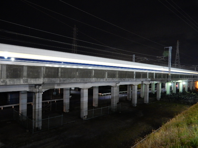 やはり新幹線は早いので、夜間に撮ると「ブレる」を通り越して面白い写真