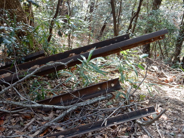 さて東信貴鋼索線ですが、ハイキングコースとなった廃線跡を下っていく