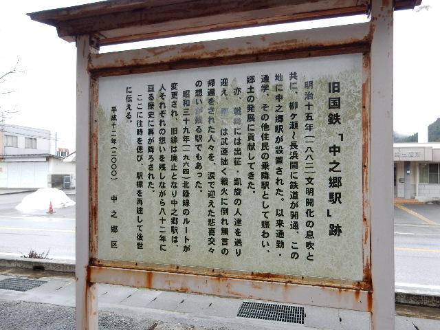 コレにも裏に由来が書いてありますね。「旧跡国鉄中之郷駅舎之地」。