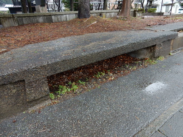 歩道に沿って低いホームの跡が残っています。…廃止が昭和39年と