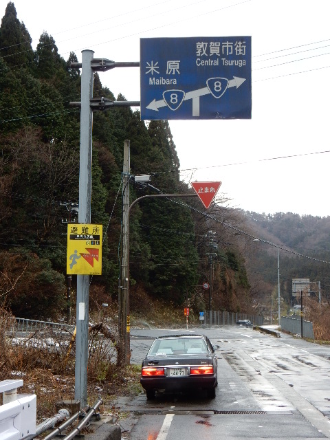 敦賀側から来ると、このような大きな注意標識と一緒に案内されてるの