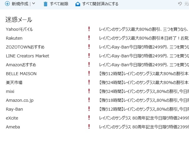 物売りのスパムメールが来るのは