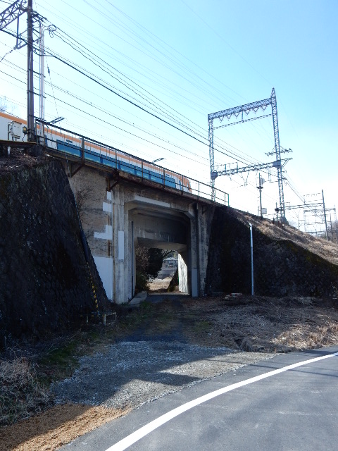 交差地点は後の時代にコンクリートなどで改修されたようですが、築堤は