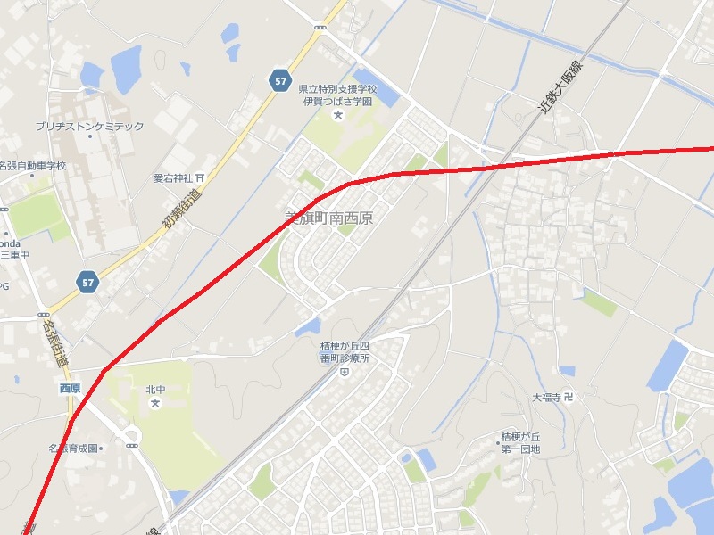 上記の2枚とも「恐らく線路があった場所から名張向いて」の角度で