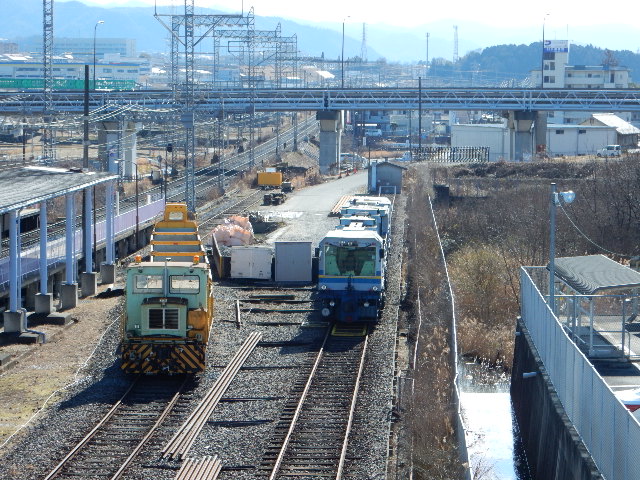 駅の北西側の入口から陸橋を登ると、さっき見えた保線基地が一望