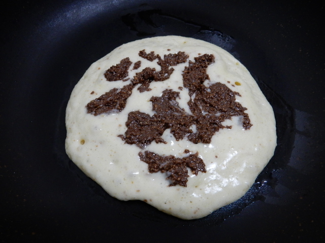 コレもホットケーキに挟んで焼いてみる。熱で上手く溶ける筈でしょ。
