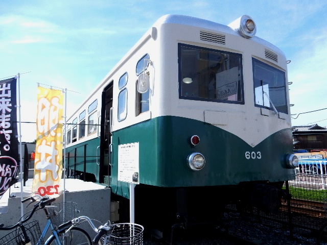 かつての主力車両だったキハ603号が静態保存車として地元の商店街