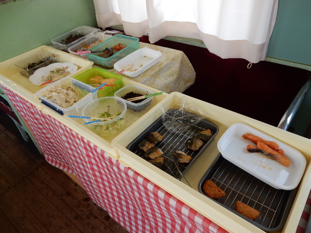 そして用意されているビュッフェ台から、好きな料理を選んで入れる