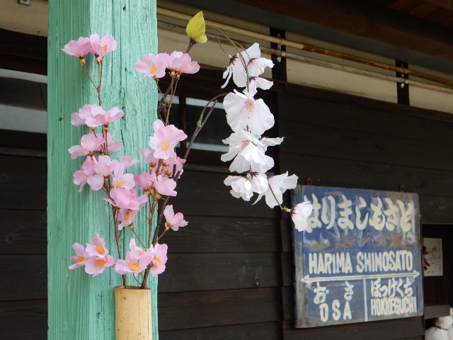 ホームには造花ですが桜が咲いており、春の装いになってきました。