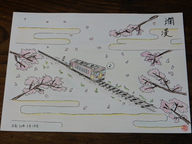 私のは、地元の笠置駅(関西本線)みたいな俯瞰での桜風景をイメージ